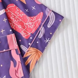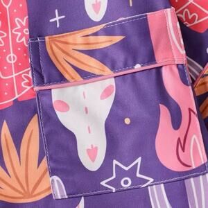 • Color: Purple with Western-inspired print (cowboy boots, hats, cactus, skulls, stars)