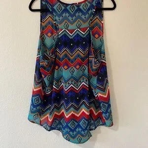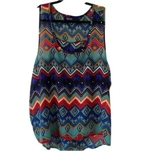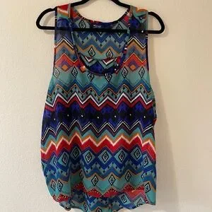 Sheer racerback tank from Mileage, size 2XL. Has cute overlap detail in back which is super flattering.