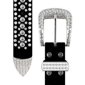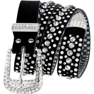 Western Rhinestone Cowgirl Cowboy Bling Studded Suede Leather Belt 1-1/4"(32mm)