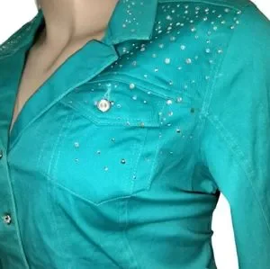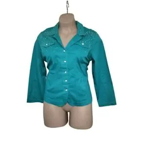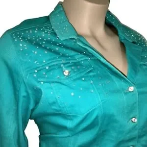 Western bedazzdled light teal denim jacket. New, Never worn. Size 2X/2T