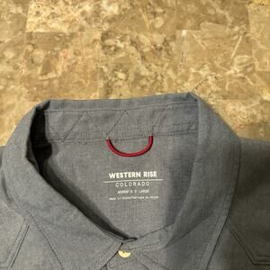 Western Rise Shirt Womens XL Blue Tech Long Sleeve Yoke Rodeo Stretch Button