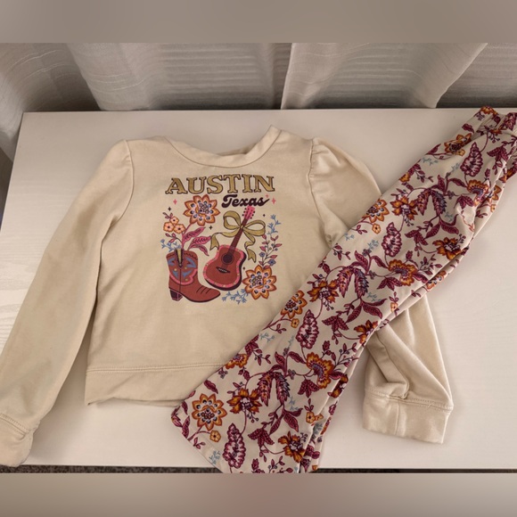 cream “Austin Texas” graphic sweatshirt + matching floral pants