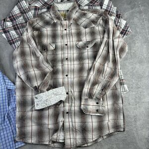 Western Shirts Men Large Long Sleeve Plaid Snap Button Wrangler Panhandle Lot