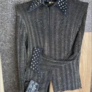 Black Glitter Slinky Show Shirt. Worn for one season then put up for a few years in protective garment bag.