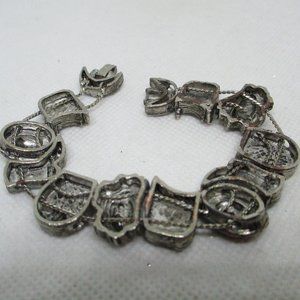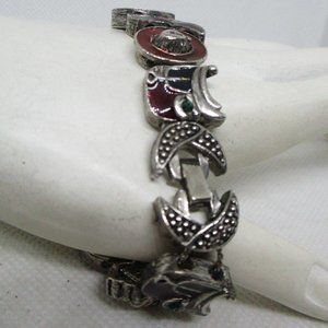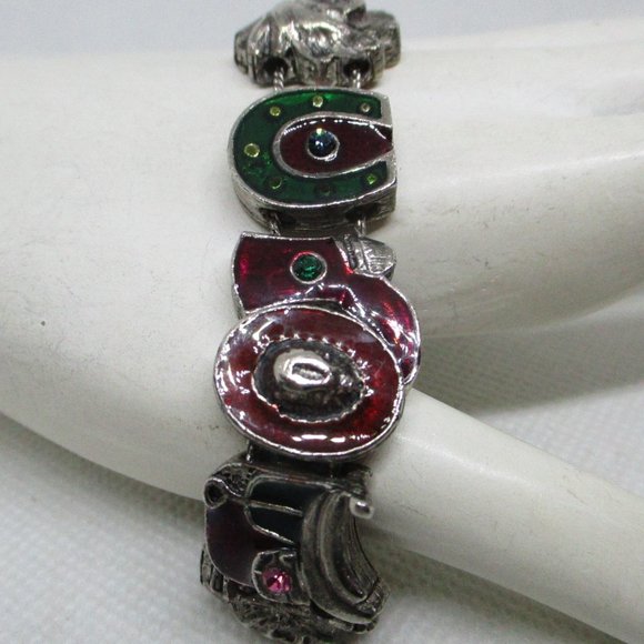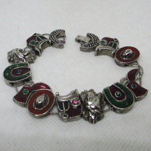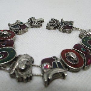 Western Slide Bracelet Rhinestone Enamel Charm Silver Tone Bracelet