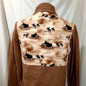 Western Snap up Shirt Jacket XS Brown Siennas Moose scene Corduroy Southwestern
