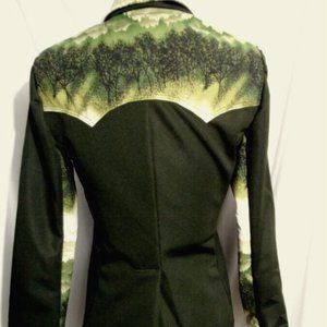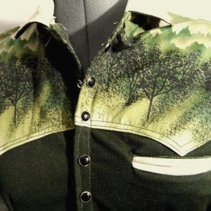 Western Snap up Shirt Jacket XS Olive green Trees moss woods design Overcoat