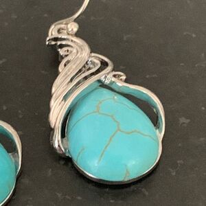 tags: men’s unisex western southwestern cowboy cowgirl turquoise stone veining vintage retro hippie bohemian ethnic boho chic blue turquoise gemstone dangle drop earrings silver jewelry women boy girl chakras meditation healing vein veining marble marbleized slab southwest native american indian natural stone statement teardrop water drop handmade hand crafted gift coastal cowgirl cowboy #turquoiseearrings