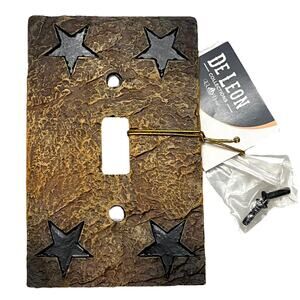 • Bring rustic charm to your home with this Western Stars Single Light Switch Cover. Crafted with durable materials and detailed with embossed lone star and rope trim accents, this decorative wall plate adds a touch of the Old West to any room.