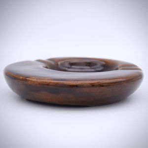 Western Stoneware MCM Round Ashtray Brown Glossy Monmouth IL Vintage Smooth Edge