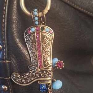 Western Style Bag Charm Jeweled Cowboy Boot And Boot And Glass Charms