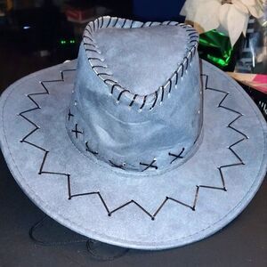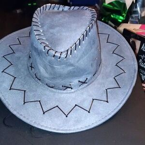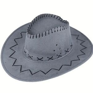 Western Style Faux Suede Cowboy Hat with Stitched Detail - Gray