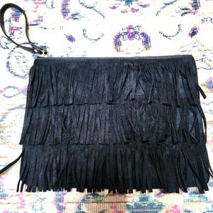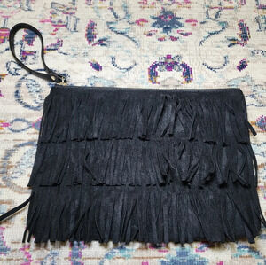 Western Style Fringe Black Clutch Wristlet Purse