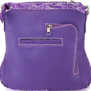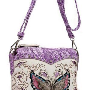 Western Style Metal Butterfly Rhinestone Studded Floral Tooled Leather Women Pur
