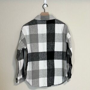 Western Style Plaid Shirt Loose Fit Jacket Shacket Tortoise Button Scoop Hem