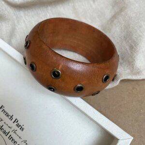 Western Style Riveted Wood Wide Bangle Bracelet Southwest Accessory