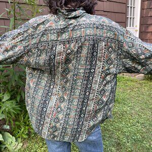 Western Style Silk Patterned Shirt, Size L