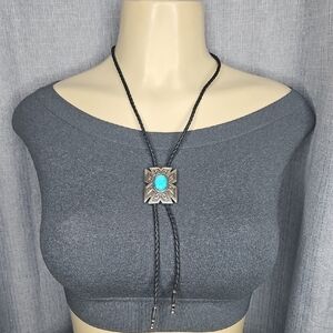 Western Style silver and turquoise Bolo tie ,in good pre-owned condition.