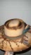 Stylish tan hat featuring intricate feather details. Perfect for a western look. Adjustable to fit your head.