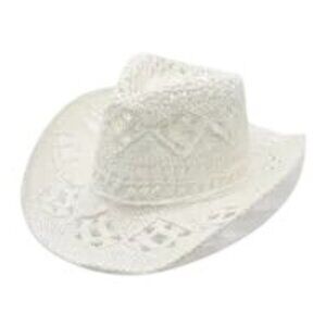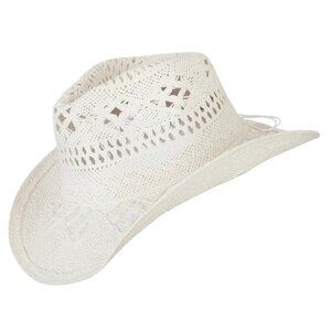 The white woven cowboy hat combines style and functionality, featuring a breathable design. You can add your feather accents or a unique hat band, and a rolled brim for a refined touch. Brim has wire edging for shaping and making the look you want. Perfect for the beach or the rodeo.