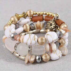 Elevate your style with this Western-inspired wrap bracelet featuring white gemstones, wood, and gold-tone accents. Perfect for adding a touch of Southwest flair to any outfit.