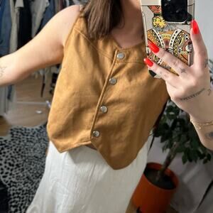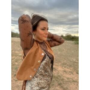 Western Suede Sleeveless Fringe Vest Brown Size