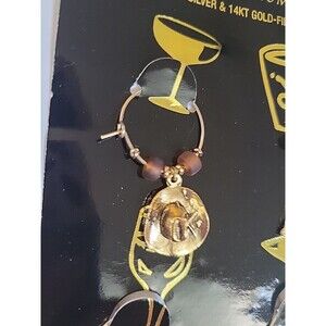 Enhance your wine-drinking experience with these Western-themed wine glass charms. The set of four 14K yellow gold-filled charms features a cowboy design, perfect for all occasions. Hoops are 14k yellow gold over sterling silver, these charms are durable and long-lasting. Add a touch of elegance to your wine glass with these charming charms. Whether you're hosting a party or simply enjoying a glass of wine, these charms are sure to impress. The set includes four charms, making it a great addition to your bar tools and accessories collection.