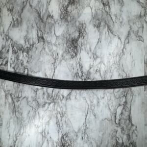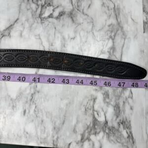 Western Tooled Black Leather Belt Strap Mens Size 44 Embossed Snap On No Buckle