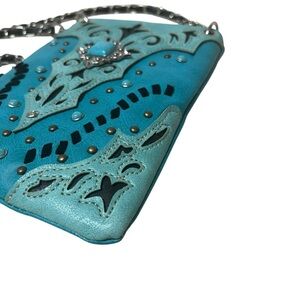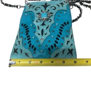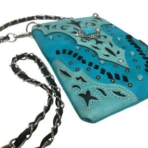 Western Turquoise Blue Studded Crossbody Purse Chain Strap Faux Leather Compact