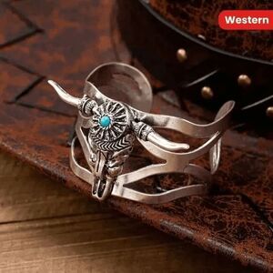 Trendy Western Boho Turquoise Bull Head Cuff Bracelet