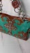 Western Turquoise Rhinestone Cross Handbag Tooled Brown Faux Leather Chain Strap