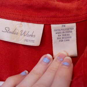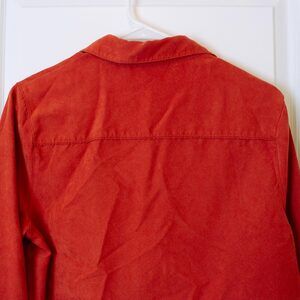 VTG M Petite Western Rick Rack Autumn Pumpkin Retro Studio Works Long Sleeve Button Up Collar Faux Suede