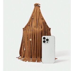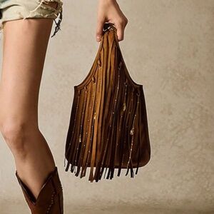 Western Vegan Suede Chain Detail Tassel Fringe Detail Tote Bag