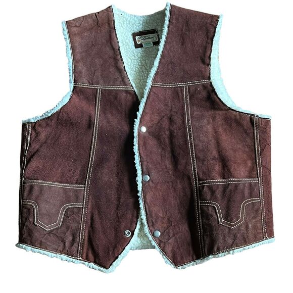 Vintage 1970s Mens Brown Suede Faux Shearling Western Vest Jacket Size XXL