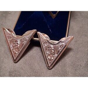 Western Vintage Silverplate Collar Tips Floral Engraved Western Americana