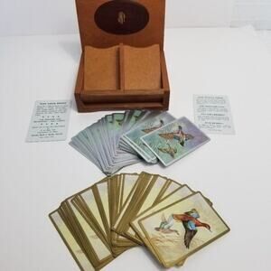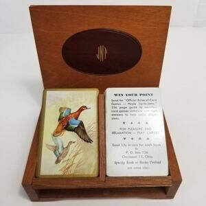 Vintage Western Wagon Train Mahogany Playing Card Box With Vintage Congress Playing Cards