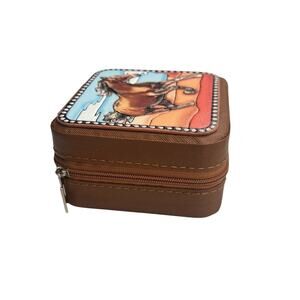 Keep your jewelry safe and stylish with this Western Mustang Travel Jewelry Box. Designed with a bold mustang motif, it’s perfect for storing rings, earrings, bracelets, and necklaces while on the go. Compact, secure, and easy to carry the ideal travel companion for any jewelry lover.