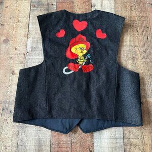 Western Women's Hand Painted Tweety Bird Fire Fighter Button Down Denim Vest