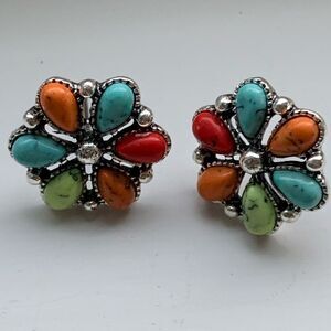 tags: southwestern western blossom flower stud earrings butternut silver stud turquoise aqua blue red orange green summer flower cluster work clusterwork unique native american indian hopi navajo indian zuni tribal taos new mexican jewelry hippie boho bohemian preppy birthday mother’s day graduation anniversary quinceañera bat mitzvah turquoise flower squash blossom boho chic bohemian retro hippie flower power #turquoiseearrings