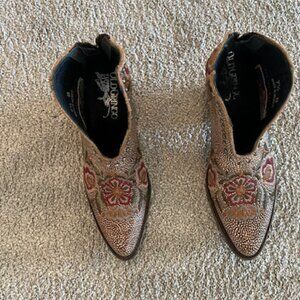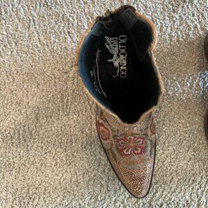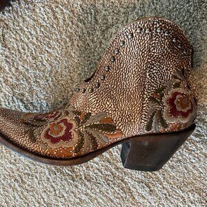 Western booties with flowers and silver metal beads, Size 7.5 by Old Gringo