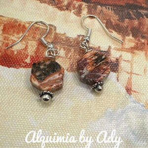 Western chunky leopard skin jasper spheres dangle earrings hexagon silver boho