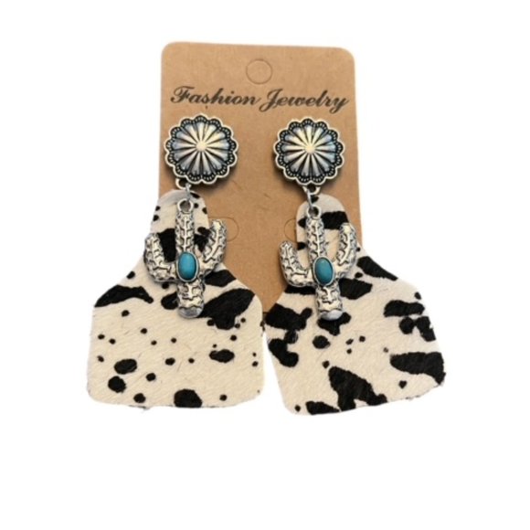 Western Hair on hide earrings, Milk cow black and white!