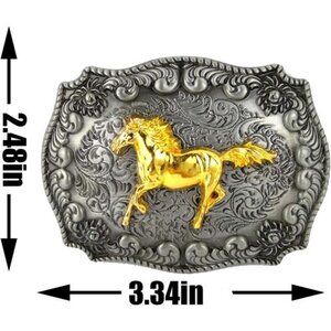 *FANCY DESIGN DETAILS: A golden galloping horse appears on the silver metal which looks awesome. Difficulties need to be overcome in the process of conquering the west, then horses become a necessity. You can own this golden horse belt buckle and overcome your obstacles too.