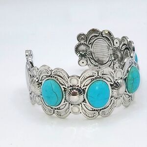 Western cuff bracelet, silver Tone and faux turquoise