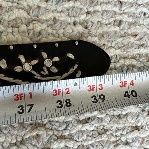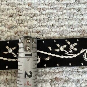 Absolutely beautiful, very unique western is Bayard belt. Embroidery and embellishments all over, big floral buckle with gold and silver colors, beautiful Preloved condition. Please review offers before purchase for condition and measurements. I’m listing the belt is black but under a different light it looks like a super dark black brown
