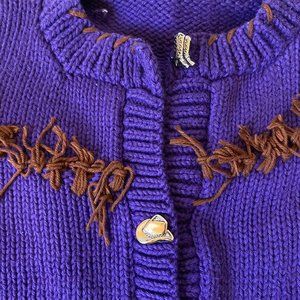 Western knit cowgirl purple sweater cardigan boots hats buttons fringe Girls m/6
