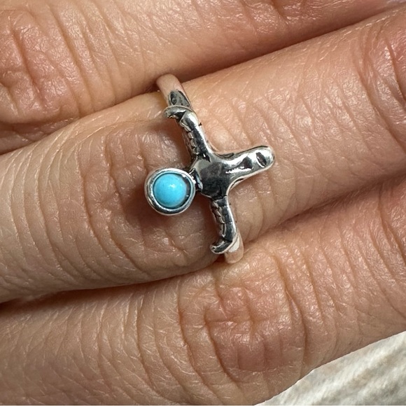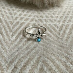 Silver ring with turquoise beading