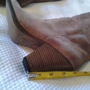 Suede like material - shaft measures 11.5in. - top opening 7 in. - no zipper NWOB