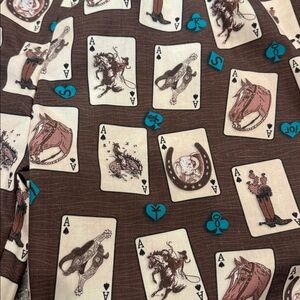 Cute western design pant! Like new. Brown cream and turquoise. Had pockets do run long!