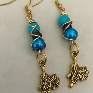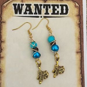 Western themed wire wrapped beaded earrings with charm